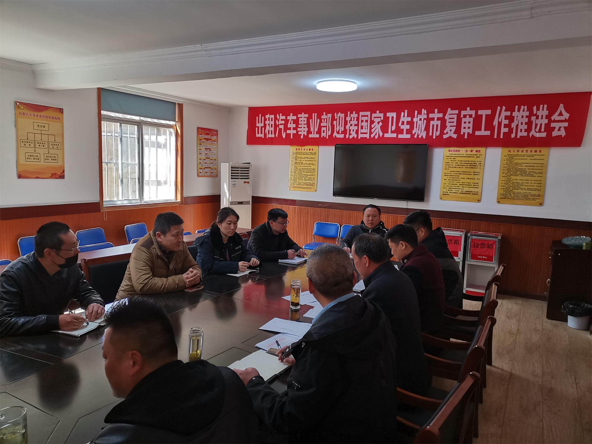 為全面做好迎接國(guó)家衛(wèi)生城市復(fù)審工作,2021年4月6日上午,出租汽車事業(yè)部召開了創(chuàng)衛(wèi)復(fù)審工作推進(jìn)會(huì),領(lǐng)導(dǎo)班子成員、黨員干部、各分公司負(fù)責(zé)人參加會(huì)議,會(huì)議由黨總支副書記程勇主持。