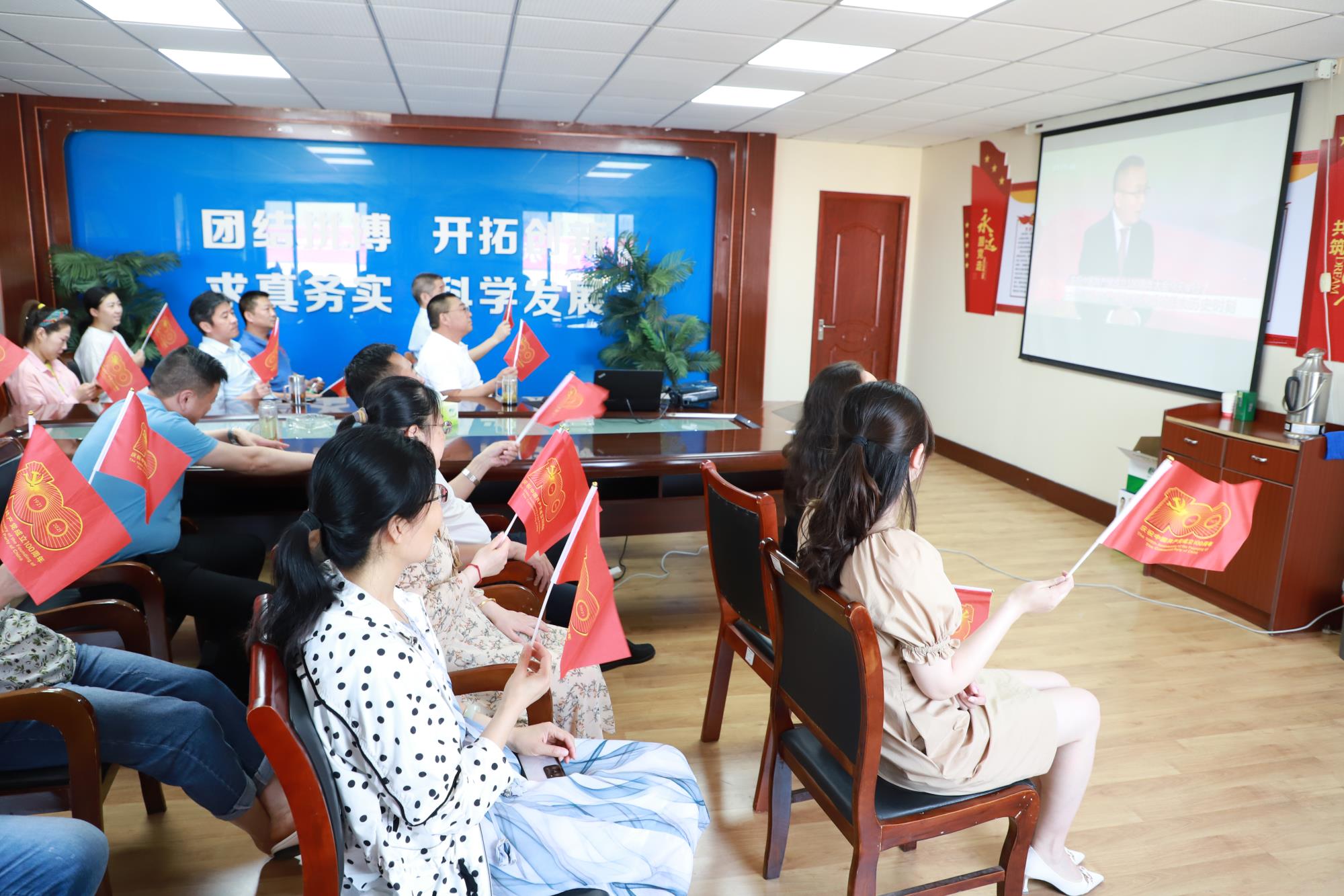 2021年7月1日上午8時(shí),慶祝中國(guó)共產(chǎn)黨成立100周年大會(huì)在北京天安門廣場(chǎng)隆重舉行。中共中央總書記、國(guó)家主席、中央軍委主席習(xí)近平出席大會(huì)并發(fā)表重要講話。汽服公司機(jī)關(guān)黨支部組織黨員干部職工共23人在公司會(huì)議室觀看大會(huì)直播。全體人員聚精會(huì)神、認(rèn)真聆聽、細(xì)心體悟,深入學(xué)習(xí)習(xí)近平總書記重要講話精神,進(jìn)一步加深了廣大干部群眾對(duì)中國(guó)特色社會(huì)主義的認(rèn)識(shí)理解。