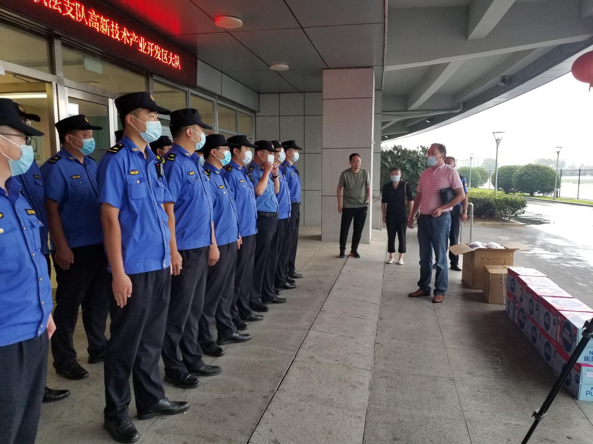 為了深入開展疫情防控工作,8月21日上午,汽服銷售事業(yè)部經(jīng)理欒文忠一行三人放棄休息時(shí)間,頂著烈日對(duì)連云港市城管行政執(zhí)法支隊(duì)高新區(qū)大隊(duì)進(jìn)行了走訪慰問,贈(zèng)送口罩等防疫物資。
