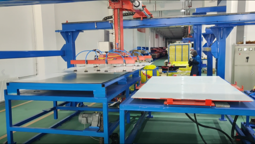 大型平板太陽能集熱器生產(chǎn)線未改造之前,單一平板翻轉動作需要多名工人配合完成,海宏科技的大平板自動化生產(chǎn)線實現(xiàn)了全自動上料、焊接、翻轉、碼垛等一系列智能控制,僅需少量工人操作系統(tǒng)完成;且系統(tǒng)界面簡潔,兩天便可完成操作培訓。依托大平板自動化生產(chǎn)線智能控制,能最大程度上為客戶降低人工成本、節(jié)省生產(chǎn)時間、提升產(chǎn)品質量,從而更好滿足企業(yè)不斷擴大的市場需求。