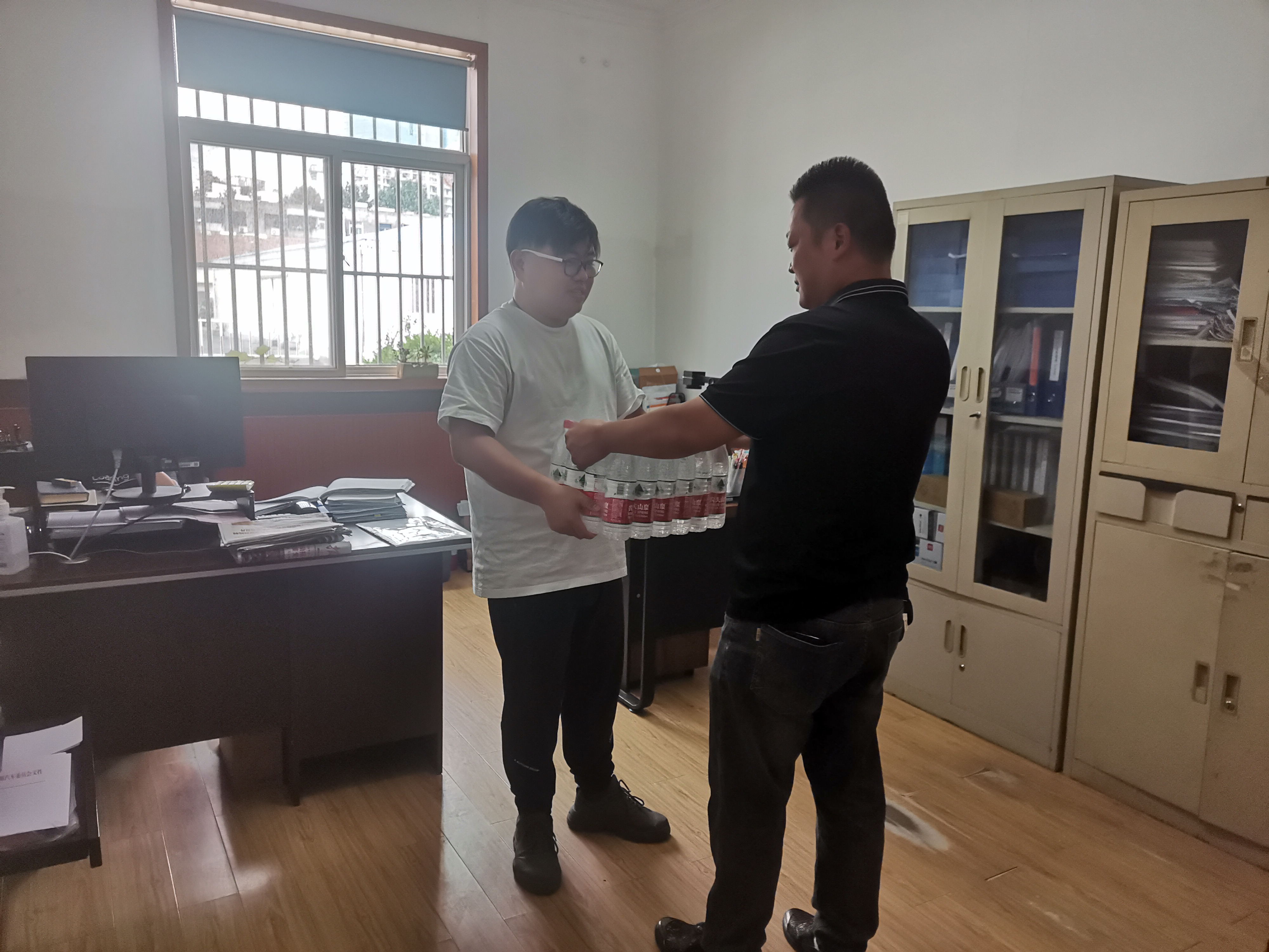 蟬鳴陣陣,酷暑炎熱,汽服公司出租汽車事業(yè)部管理人員頂著高溫、耐著酷暑,堅(jiān)守著自己的崗位,認(rèn)真仔細(xì)地檢查每一臺出租車,對發(fā)現(xiàn)的隱患及時(shí)進(jìn)行排查整改,全力做好出租車安全行車工作。為了關(guān)心工作人員的身心健康,保證企業(yè)安全生產(chǎn),8月11日上午,出租汽車事業(yè)部領(lǐng)導(dǎo)班子成員親切慰問了一線的工作人員,并給他們送去降溫防暑慰問品。