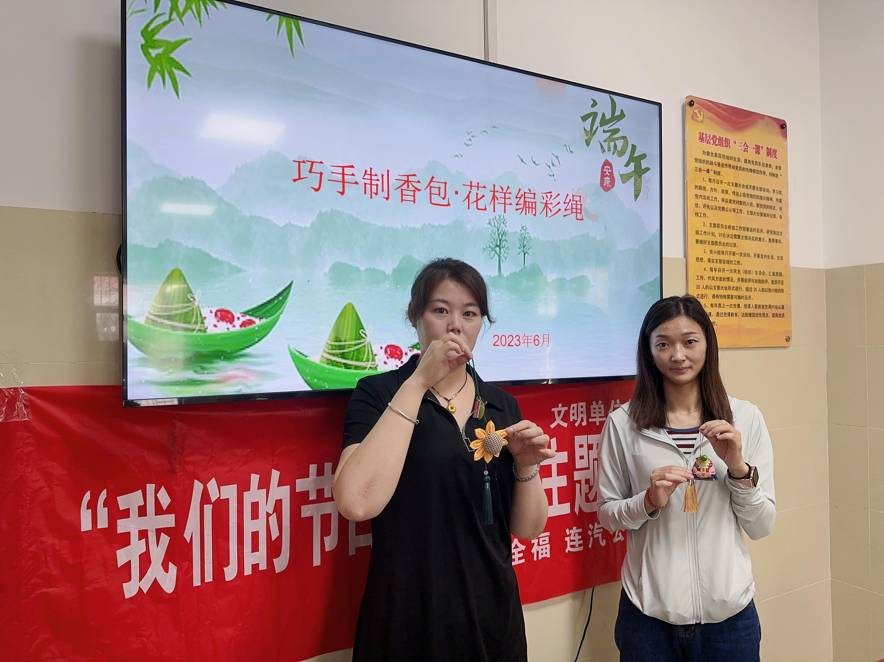 活動伊始,工作人員為大家準(zhǔn)備好香包布料、艾草、絲線、掛飾等材料包,并介紹了端午節(jié)的由來、講述了傳統(tǒng)文化故事與端午習(xí)俗,讓大家充分了解端午的民俗文化。通過學(xué)習(xí),干部職工感受到傳統(tǒng)文化魅力,增進(jìn)了愛黨、愛國情感。在做香包過程中,干部職工有條不紊地開始制作香包。一雙雙巧手,穿針引線、填充香料、打結(jié)收尾……每個細(xì)節(jié)都格外認(rèn)真,大家紛紛把自己最美好的端午祝福縫入香包。清幽的艾草香氣彌漫開來,一個個各式香包逐步完成,每個人的臉上都洋溢著笑容。在編五彩繩活動中,干部職工通過結(jié)、繞、纏、編、抽等手法,細(xì)心編織,再綴上彩色小粽子掛飾,一條漂亮的端午節(jié)彩繩便完工了。歡樂祥和的氣氛洋溢在整個活動現(xiàn)場。